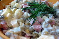 Since Summer is here and us Americans think of potato salad. In Russia, the potato salad is a winter favorite and a summer favorite. The Olivier is a must have at the Russian New Years.