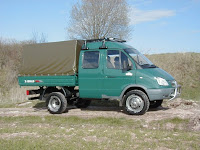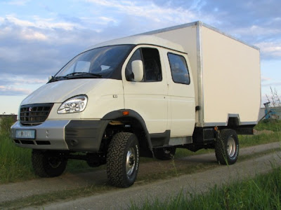 <--- (Truck to left would be perfect!) The designers in Russia of the GAZelle truck did their best to make driving as comfortable as possible. The front disk brakes, power steering and small turning radius enable the trucks to be highly maneuverable even in that urban high-density traffic that Moscow, Russia is well known for. The interior design is basic but wears like iron. Easy maintenance and sturdy design, the robust GAZ (Gazelle) truck is becoming the truck of choice for either a city businessmen or a farmer for which it is often an all-purpose vehicle.