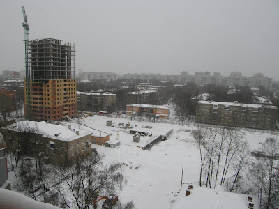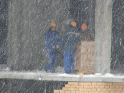 Below – The beginning tower of a huge complex of flats it was hardly snowing. The next pictures are guys who are working in the tower…