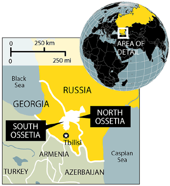 Now the Playing in Russia’s backyard has lead to a statement from Russia: “Russia said on Tuesday it would not remain indifferent if violence continues to escalate in Georgia’s breakaway region of South Ossetia, Interfax news agency reported, quoting a Russian diplomat.” (Link)