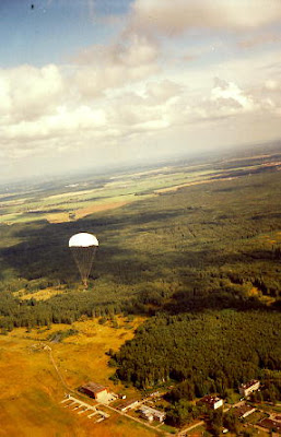 And we were standing in the line already wearing parachutes and our instructors checked again and again our equipment. Then we were sitting in a tiny airplane AN-02 and it’s running very very fast on the strip and ah! we already flying very fast and almost vertical. And all blood in the body ran like crazy and fear and admiration because you already know you will made it, you don’t have any chance. And our parachutes were fasten to the line in the selling of the plane and command “Stand up and, first – go, second –go, third -go…” And I at the edge of the plane and instructor’s slap on my shoulders and command to go! And Earth so far from you that you even don’t think about the distance to the ground, and the Step – step out, step out of you, step to meet uncertainty…. (Later when I thought about it I found just the only thing alike this Step and we all made it! It was when we left mothers body to live in the World.)